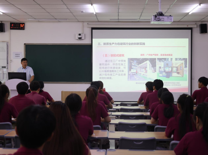 刘振民以两会报告中提出的“新质生产力”为切入点,详细解读了这一概念。围绕“深刻认识新质生产力的丰富内涵和特征;发展新质生产力,职业教育如何赋能;新质生产力在建筑行业的创新实践;发展新质生产力,应院建工学子当何为”等四个方面,通过丰富的案例和生动的语言,深入浅出地阐述了新质生产力的具体表现形式。他勉励全体青年员工要对党忠诚,以“矢志不渝”的坚定理想争做“心有所信”的青年排头兵;充电蓄能,以“全面过硬”的素质本领争做“腹中有墨”的青年排头兵;勇毅前行,以“驰而不息”的奋进状态争做“脚下有路”的青年排头兵。